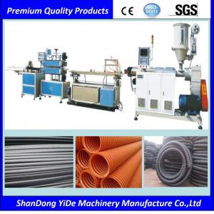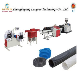 PVC corrugated pipe production lineDescription1. PVC corrugated pipe production line mainly includes: Extruder, mould, calibration tank, haul-off, cutter, winder. 2. PVC corrugated pipe is single wall type3. The PVC corrugated single wall pipe has t