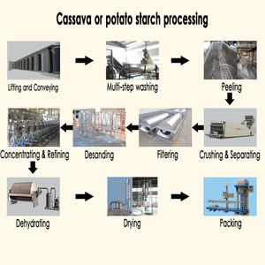 Product Description potato starch plant potato starch processing line potato starch making machine small scale 40-50tons potato per 24hours 80-100tons potato per 24hours Our Services 20year old enginner layo