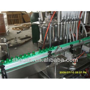 It has auto bottle-lifting, bottle entering, ionic washing, bottle delivery, filling with fixed amount, bottle handing, bottle capping, air exhaust, sealing and other processes.