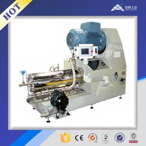 Wet process milling equipment which can produce continuously, the working principle is the power delivered form high-speed rotor to milling medium and liquid material, through mutual colliding and laminating, ultrafine result can be achieved.