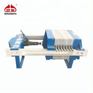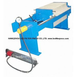 Manual Hydraulic Small Size Manual Chamber Filter Press 1. small size filter plates 2. compact filter press frame design 3. light weight for the total filter press,moible design for filter press spot shifting 4. manual filter plate shifting to di