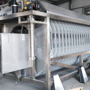 The water to be treated flows by gravity into the filter segments from the centre drum.