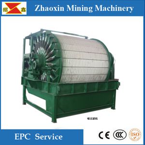 Rotary vacuum filter is applicable to geological, metallurgical, building material, mining and other industries for mineral dewatering after flotation, gravity concentration, magnetic separation and other operations in tests on mineral separability and se