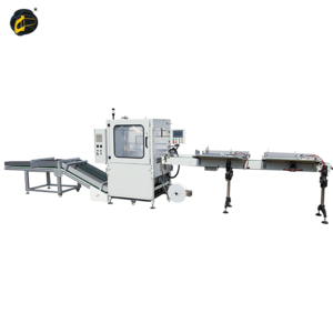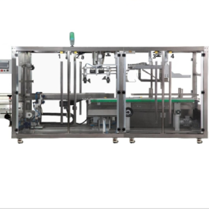 Automatic box feeding, leveling, sucking, pressing, pushing, folding, heat gule and forming.