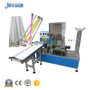 The method of packaging involves loading the finished drinking straws into a supply hopper.