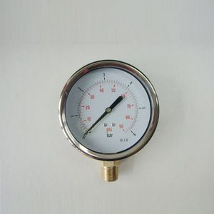Product Description 2.5" (63mm) 150psi all stainless steel filled pressure gauge Size:1.5",2.0",2.5", 4", 6" (40MM,50MM,60MM,100MM,150MM)Pressure range:Stainless steel 316L ≤ 100 bar: C-type / ≥ 100 bar: Helical typeConnection th