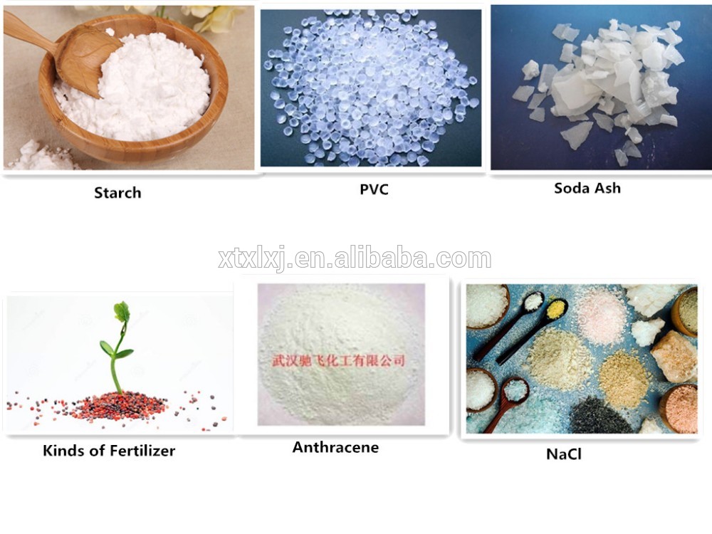 Ammonium sulfate, sodium sulfate, nickel sulfate, ferrous sulfate, anthracene, polyethylene, polystyrene, polyvinyl chloride, urea, caustic soda, food salt, boric acid, ammonium chloride, sodium carbonate, sodium pentachlorophenol, bleaching powder,
