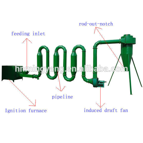 raw materials: rice husk, saw dust, wood dust, wood shavings, wood chips, branches, etc. with the diameter less than 3mm and length less than 5mm. The temperature of drying machine ranges from 180°C-250°C.