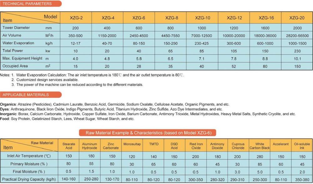 XZG model spin flash dryer is designed by ourselves .The hot air enter into the dryer chamber from the bottom of dryer host,its going into the dryer chamber by inlet entrance.The rotor at the conical base of the drying chamber fluidity product particles in a drying-efficient hot air flow pattern in which any wet lumps are rapidly disintegrated. Using the heat from the air stream, the material dries as it is conveyed. Product is separated using cyclones, and/or bag filters. Typically, cyclones are followed by scrubbers or bag filters for final cleaning of the exhaust gases to meet current emission requirements.