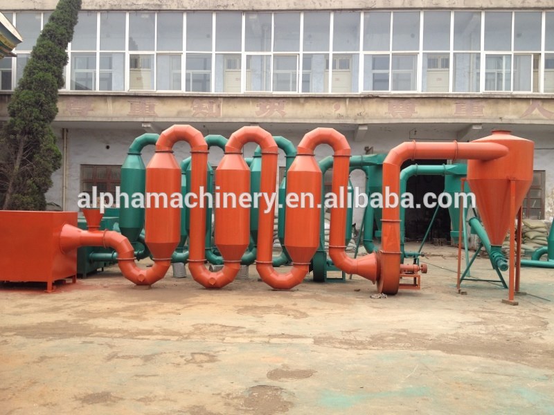 Wet materials are input into the hopper, the fuel boile generates hot air which mixes with wet materials and thn is sucked into the pipes by the exhaust blower quickly. And then hot air is flowing and going thought the curving pipes and buffer(drying chamber)of dryer, thus wet materials is finished to dry, and The dried materialsare expelled out b the exhaust bower(fan).