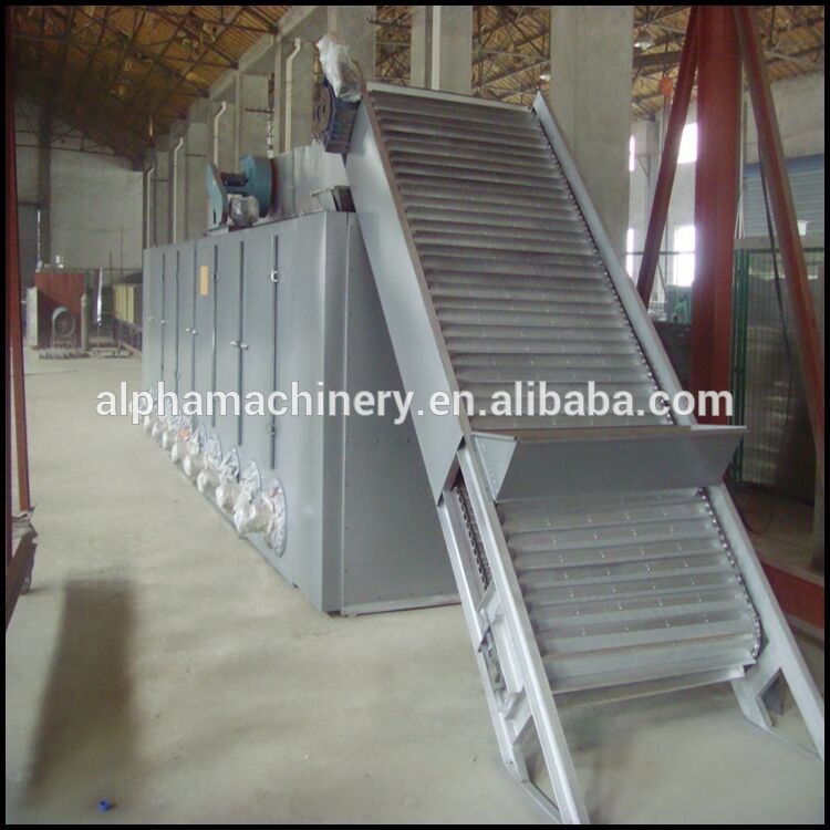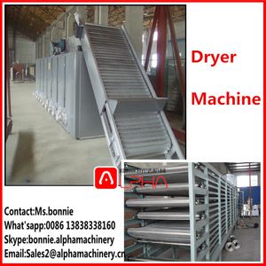 Raw materials are spreaded on the conveying belt through suitable auxiliary mechanism such as distributor, vibrating belt, pulverizer of granulator,belt passes the channel which containing one or several heating units; heating unit is equipped with air heater and circle system. Each channel has one or several damp exhaust system. When raw material is transited, hot air passes through or over it. In this way it makes raw material dry uniformly