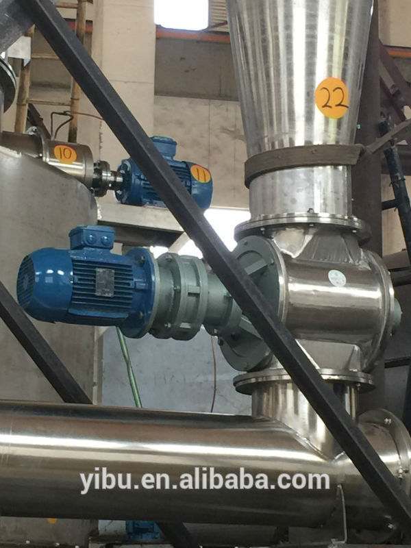 The hot air enters into the bottom of the dryer in tangent direction.Under the driving of the stirrer,a powerful rotating wind area is formed.The paste state materials enter into the dryer through the screw charger.Under the powerful function effect of stirring at high-speed roation,the materials are distributed under the function of strike,friction and shearing force.The block state materials will soon be smashed and contact the hot air fully and the materials are heated and dried.The dried materials after the de-watering will go up with the hot-air flow.The grading rings will stop and keep the big particles.Small particles will be sidcharged out of the dryer from the ring center and will be collected in the cyclone and dust collector. The not-fully-dried or big piece materials will be sent to the wall of the equipment by centrifugal force and be smashed again after they fall down to the bottom. This machine combines the whirl technology with the fluidity .ejection and smashing step technologies. The equipment is compact and small in size ,high in production efficiency and continuous in the production .It has realized that "a small equipment can perform the large production ". The drying capacity for this machine is big but its energy consumption is low. Its heat efficiency is high. The materiral stay time is very short .The quality of the final products is very good ,The machine can be used for drying the heat sensitive materials . For the negative pressure or the micro-negative pressure operation ,the machine is good for its tightness and high in the efficiency so as to eliminate the environmental pollution .