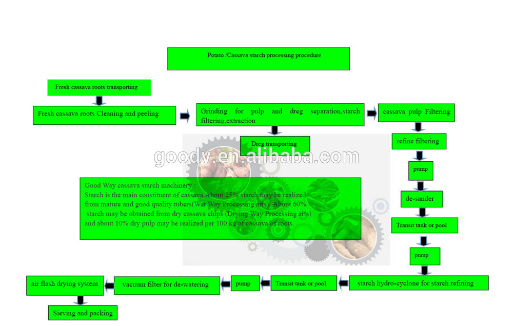 Fangcheng Goodway Potato Machinery Factory specialize in producton roots starch processing plant , such as potato starch processing plant , cassava (tapioca ) starch processing line and sweet potato stach processing line, we have different capacity of