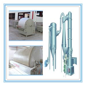 Airflow drying is cocurrent flow drying process, namely, the cocurrent flow of wet powder material and the heat flow , consists of heat transfer and mass transfer process.When wet starch with the hot air in contact, hot air transfer heat to the surface of the wet starch, again from surface to interior, the process is the heat transfer process;At the same time, the moisture in wet starch diffusion from the material inside to the surface of starch by liquid or gaseous, and then diffusion into the hot air from the starch surface through the gas film , it is a mass transfer process.by the high temperature air and wet starch balanced heat exchanging in the drying tube , the drying starch become dry powder, and then packing and warehousing after cooling.