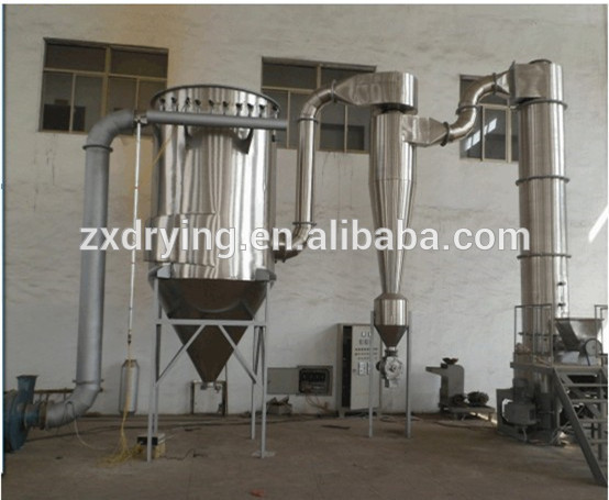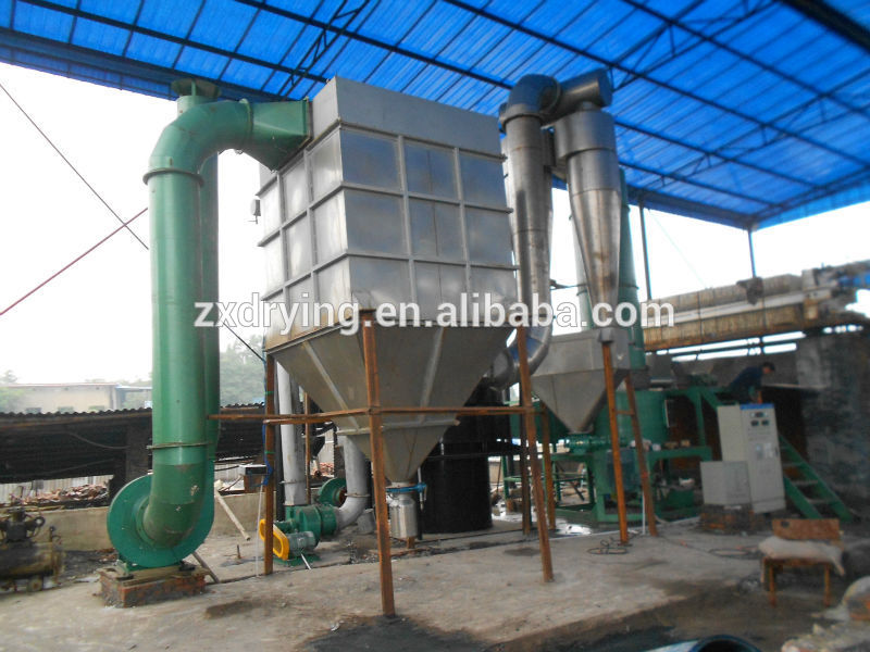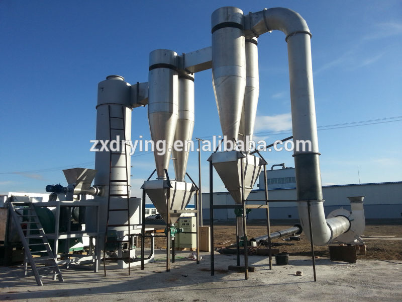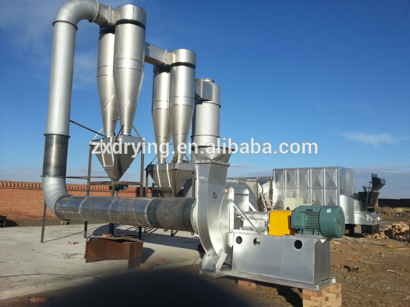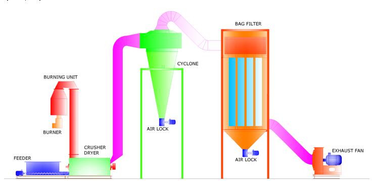 The simple flash drying system includes seven basic components: the heater, the wet material feeder, the dryer and crusher, the cyclone, the jet filter and a exhaust fan.