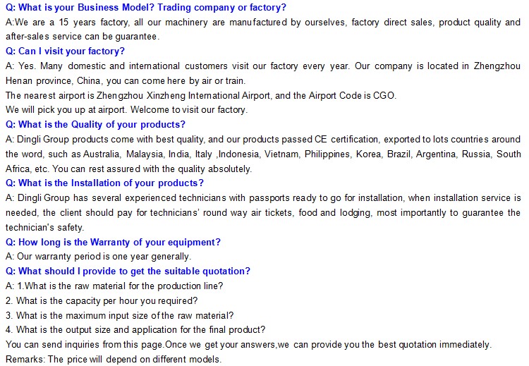 3. After installation, leaving 1-2 technical staff to help you on-site production, untill achieve customer satisfaction.