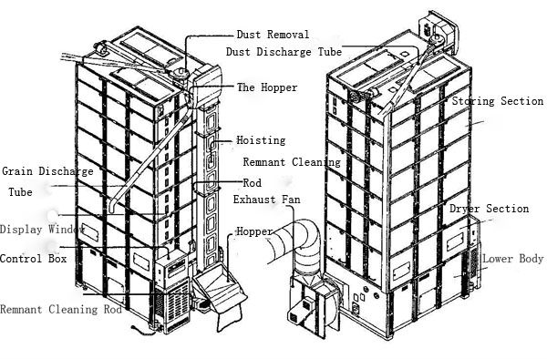 | Drying capacity | Rice 8-10,Wheat 7-10 t%/h |