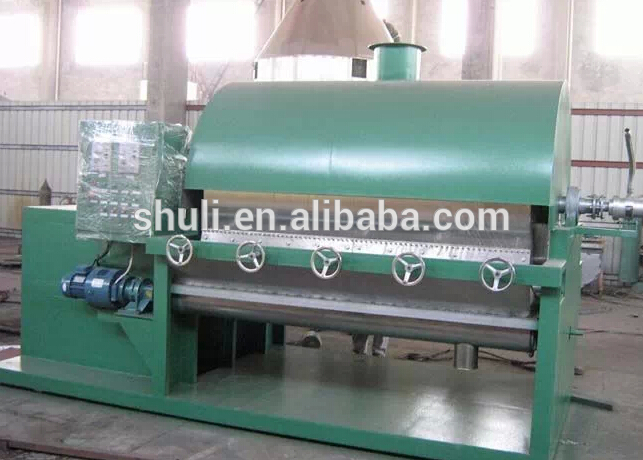 The outer surface of rotating dryer is coated with a uniform layer of slurry (ie. film thickness), The pressure of the dryer will be 0.15-0.3Mpa after passed into the steam. The slurry is heated up from the outer wall of the dryer, and vaporization of water discharged by the suction fan. The material is dried out when the dryer completes rotating one round. Finally, the sheeting material is discharged by the scraper from the dryer wall, and then can be collected at the discharge port.