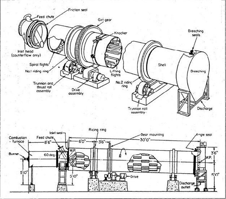 2) Small fluid resistance while the material and hot air through the cylinder, which makes a lower energy consumption;