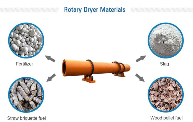 Rotary dryer is used widely for material drying. The drying cylinder has a certain angle against the horizontal level and rotates while running. After putting the wet materials into one end of the rotary dryer, the materials are dispersed uniformly and formed a material curtain in the cylinder to contact the hot air thoroughly which makes heat exchange to achieve material drying. At the same time, under the force of declining lifting board and hot air, the materials move to the rear of the dryer, finally unload the finished product.