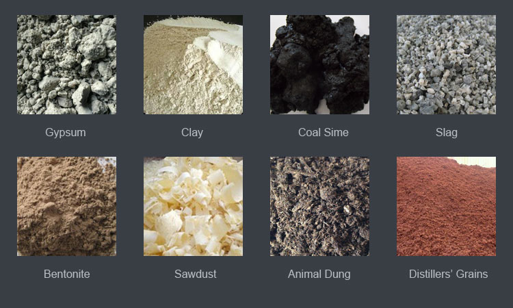 Damp and sticky material: Coal slime, sewage sludge, Bentonite, Kaolin etc.
