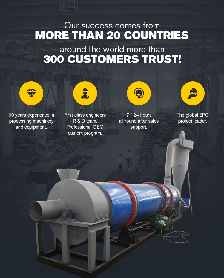 A: Dewo Machinery grants our customers a twelve-month-period warranty from the date of delivery for machines exported from us. During the warranty period, in case any defect of material or workmanship occurred with spare parts in normal operation, we will replace or repair the defective parts freely at our discretion. Industrial Dates Animal Feed Sludge Chicken Manure Sawdust Roller Kiln Rotary Drum Dryer Drying Machine Equipment Price For Sale