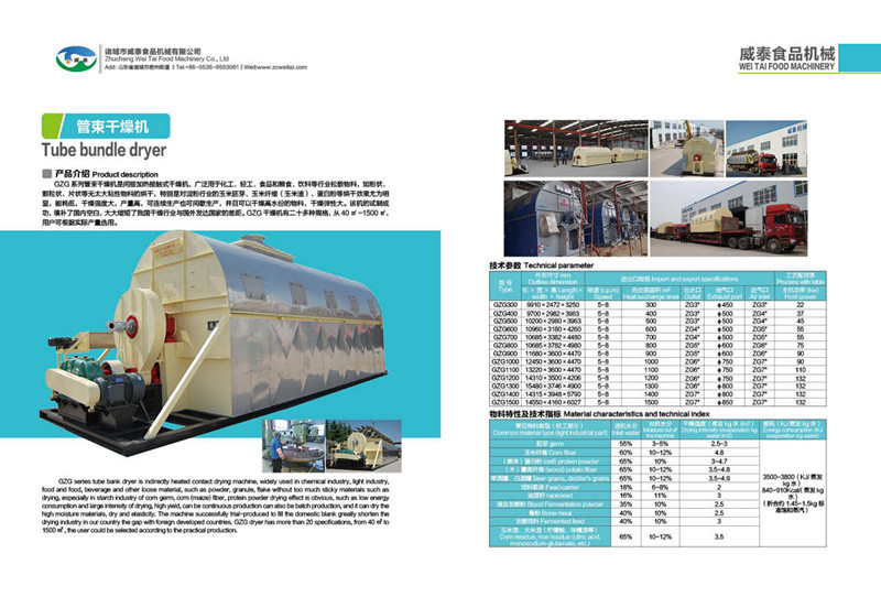 GZG series dryer is an indirect heating contact dryer,either by upstream or by downstream work.It can be widely used in chemical, light industry,grain and foodstuff, feed and other industries to dry loose material,such as powder, granular, sheet-like material without much sticky. The loose materials include alcohol,beer grains of light industry; Meat industry's pig hair, bone meal (to bone glue) and pig blood baking powder;Chemical industry particles; Powdery fertilizers and inorganic minerals;Starch industry corn germ, corn fiber (corn residue), protein powder and so on;As well as the carrier of the feed industry (bran, corn chips, soy flour, etc.);leftover material of fish, shrimp and oil industry rapeseed(non-seed)etc.