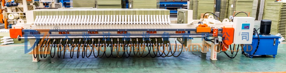 5, Automatic plate shifting system: it is auxiliary function for cake discharging, after finish filtration, this device can automatically pull plates and cake discharging, it not only improve the efficiency of the filter and reduces the labor intensity, but also can reduce the filter caused by human factors board irregular arrangement.
