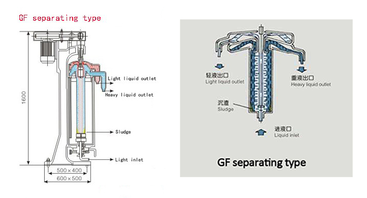 Decanter centrifuge is the mechanical equipment used for continuously separation the materials in the suspension with density difference, by the principle of centrifuge settling. The basic principle is the drum and the spiral feeder rotate in the same direction but with a certain speed difference; The material is led into the feeding spiral inner cylinder via the feeding pipe and after speeding up, enters the drum; Under the action of the centrifuge force field, the relatively heavier solid-phase material deposits on the drum wall forming the residue layer; The solid-phase residue is continuously pushed by the spiral feeder to the conic end of the drum and after dehydration in the drying area, is discharged under full-speed running.