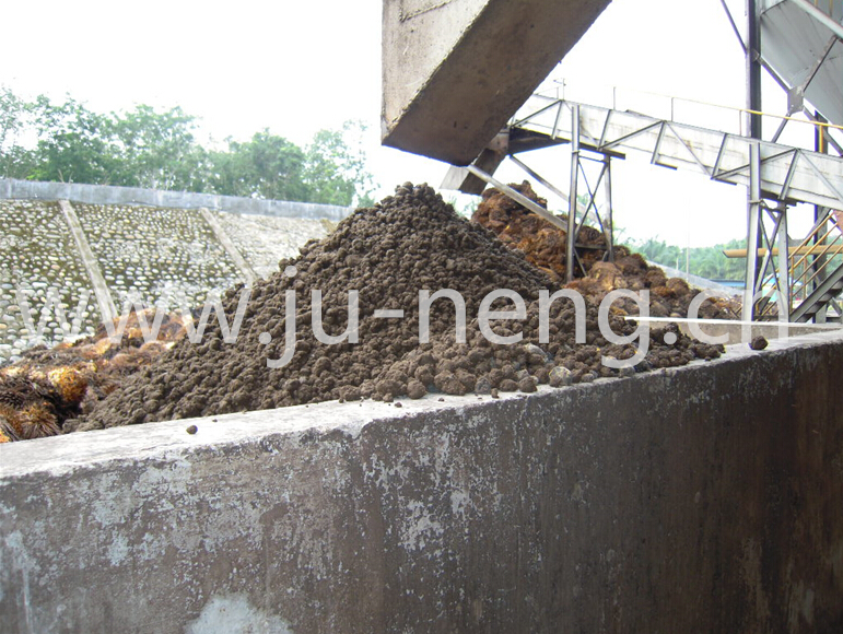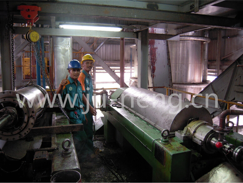 The 3-phase decanter centrifuge separates the palm oil sludge into the oil phase, solids and virtually oilfree waste water.