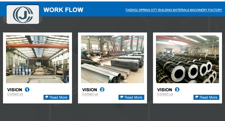 Centrifugal spinning machine :This machine is mainly used to produce annular concrete piles,beams and columns of different diameter and length by centrifugal forming.Equipped with a stepless speed-variation motor and a control panel,it works smoothly and its speeder is of wide-range.Its box base is sturdy and durable and easy for installation.