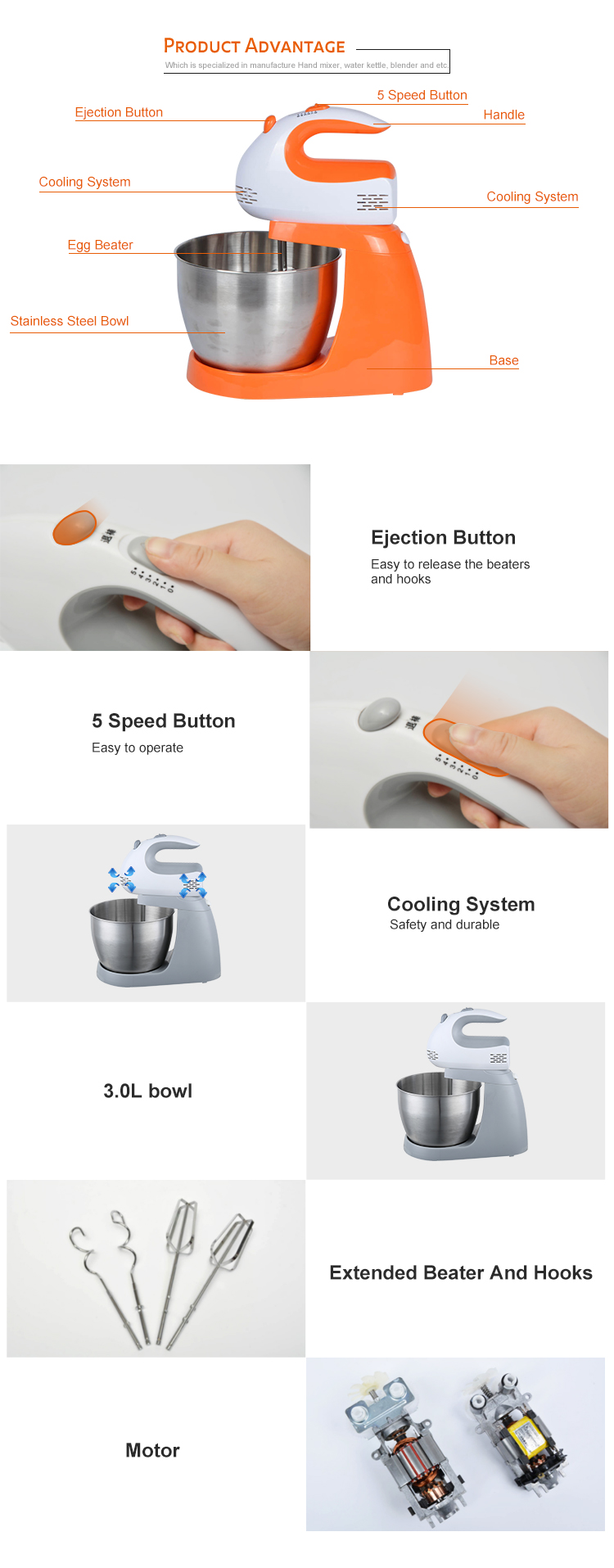 | Accessories | 2pcs Beater, 2pcs Dough Hooks |