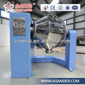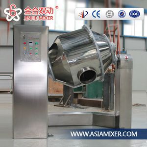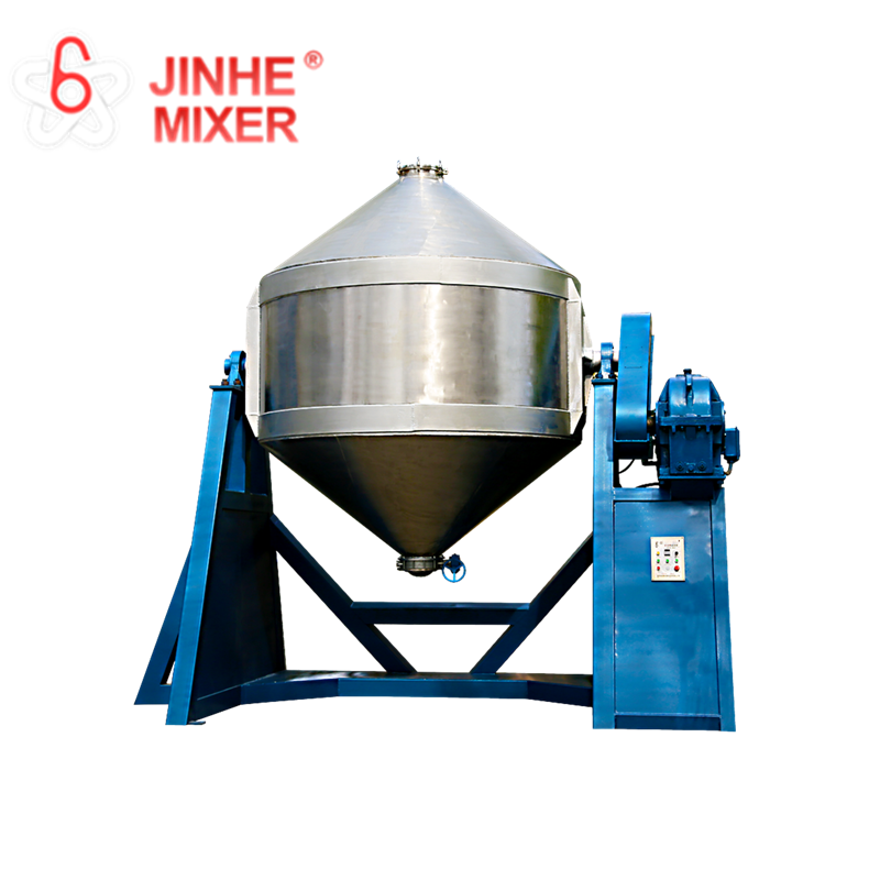 JINHE®JHX series NEW invention Chinese national patent conical ribbon shaft conical vessel double motion dough mixer machine. Its mainly acting part is made up of revolving double cones container which is placed declining, plus external revolving axis and internal helical blades components. Components with different revolving speed are driven by one power system. Between the helical blade's revolving axis and container it is sealed by special sealing components.