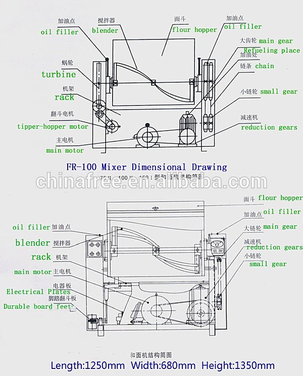 2.This series dough kneader machine adopts gear transmission, simple and compact structure , ea