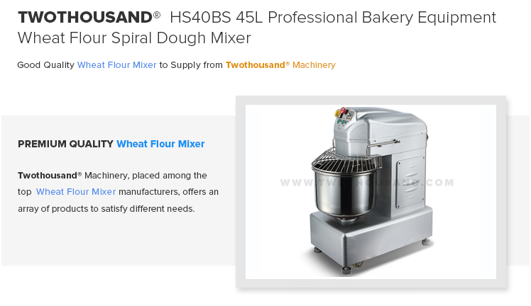 Since 2000, Twothousand Machinery have become to the most trusted supplier in the Restaurant Equipment with Food Preparation Equipment, Refrigeration Equipment, Cooking Equipment, Pizza and Concessions, Food Processors and Dishwashing Sanitation, especially in the Sprial Dough Mixer, Bakery Dough Mixer, Wheat Flour Mixer.