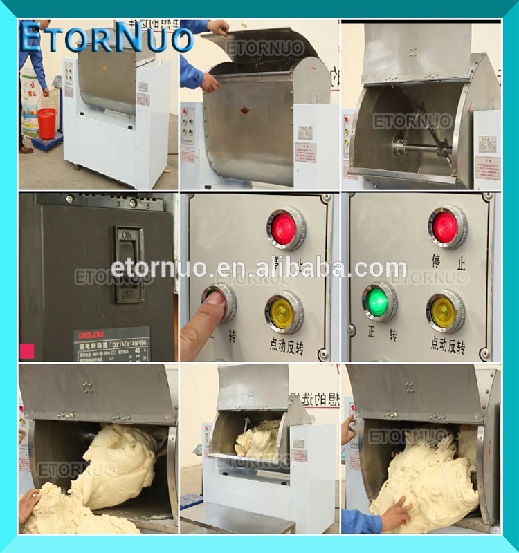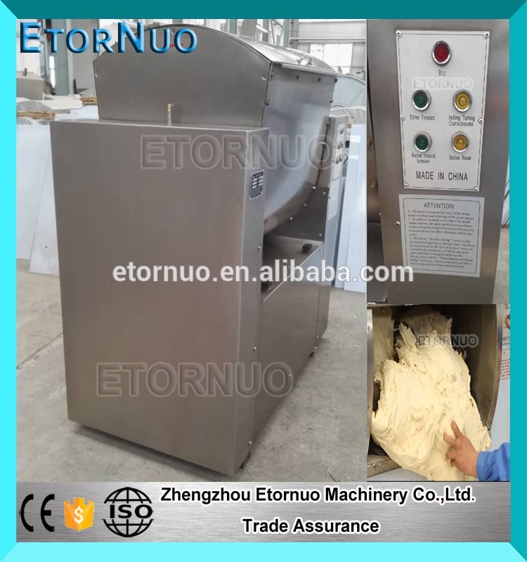 The heavy duty dough mixer is the main equipment for noodle processing equipment, it is mainly used for the proportion of wheat flour and water 1:0.38-0.45 according to user processing requirements (sometimes add cooking oil, sugar and other food and food additives) blend to dough, widely used in canteens, restaurants and pasta processing unit, is replace manual, reduce labor intensity, ideal equipment to meet people's food hygiene requirements, also suitable for stir and mix for other similar materials.