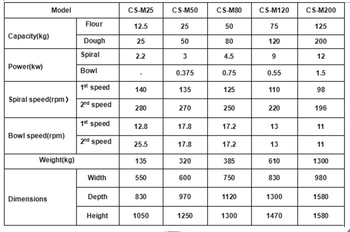 25/50kg flour 50kg wheat dough steno spiral dough mixer