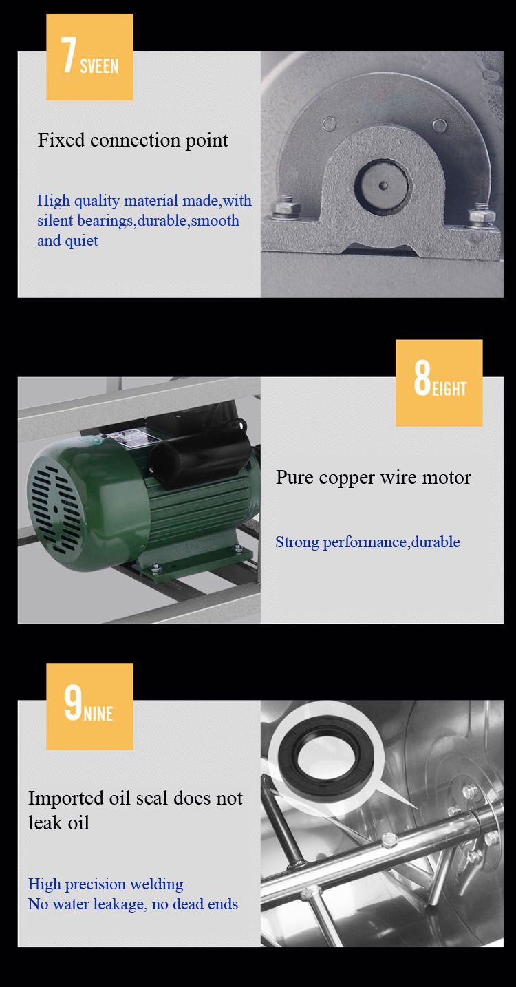 Our factory produced the electric mixer is a flour mixer, with inverted electrical switch, the stick can reverse rotation, the stirring effect is more ideal, the machine design is reasonable, easy to operate, high efficiency, the parts made of Stainless steel or electroplating, in line with hygienic requirements.