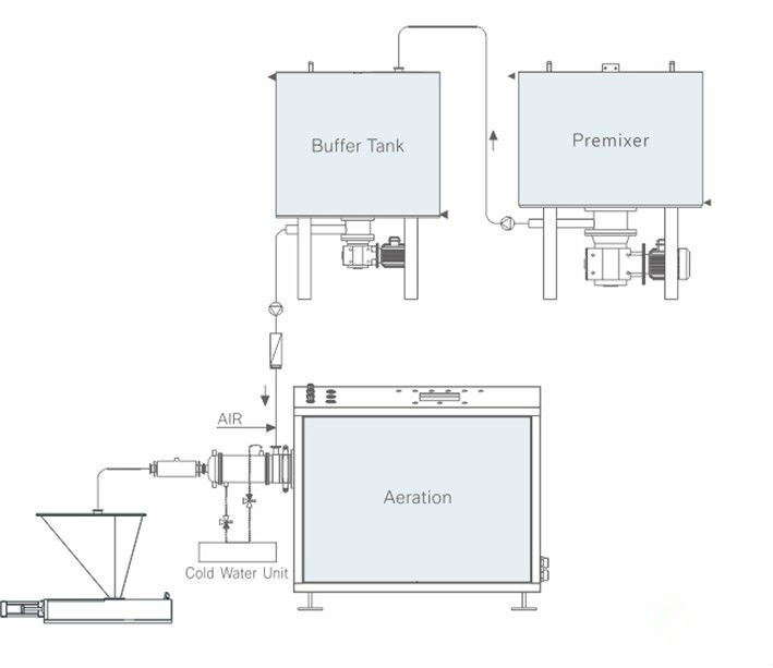 Our A500 continuous aeration system offers constant production of marshmallows, cake batter, whipped cream, chocolate, eggs, foamed confectionery, dairy products and many other food products for uniform cell structure and precise specific gravity. Max capacity is up to 500kg/h. It fits for production line with large capacity.