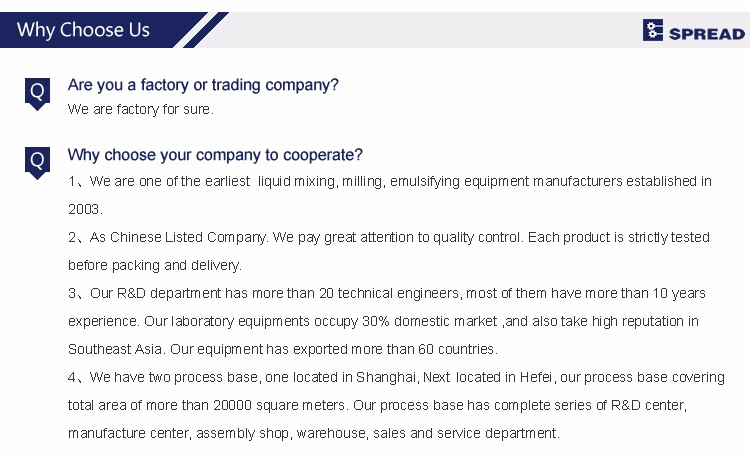 Interchangeable Workheads - Three stagse rotor/stator configurations workheads as standard. For the rotor/stators configurations, 2, 4 and 6 layers structures makes the best shearing result.