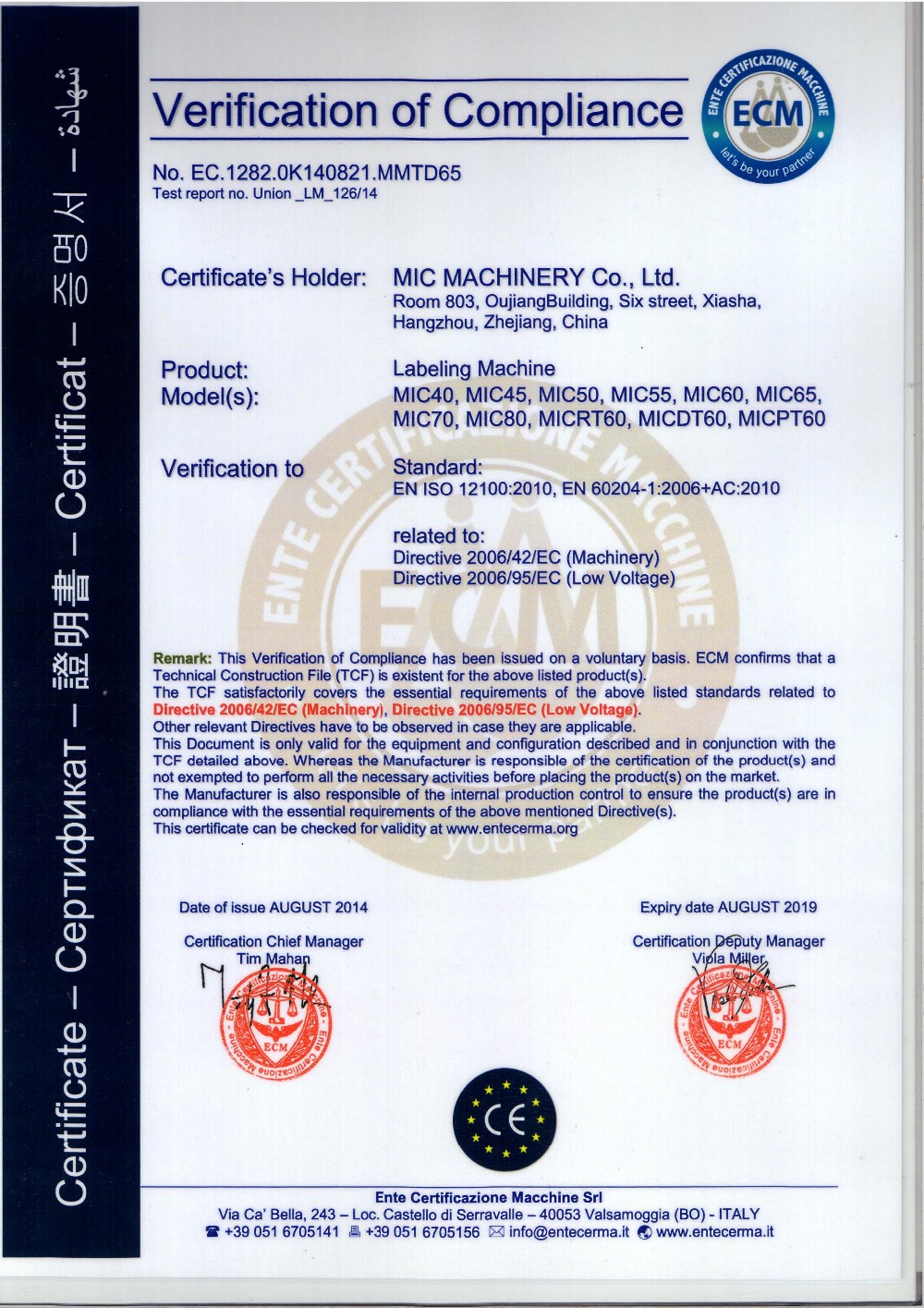Our Website: www.micmachinery.com