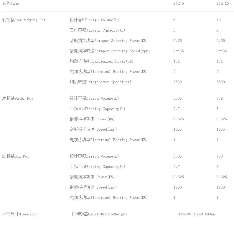 Specification of the Laboratory vacuum emulsifying homogenizer and mixer, Homogenizing Emusifying Machine