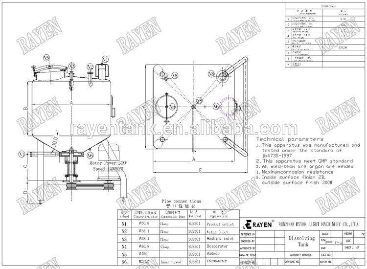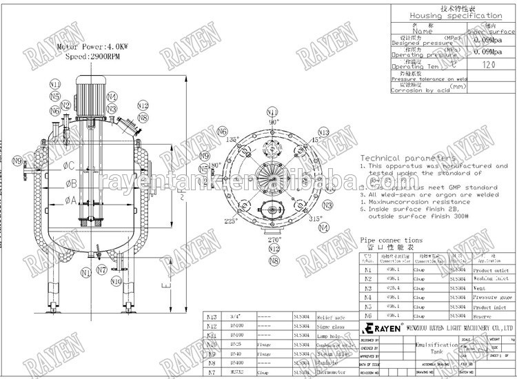 (3)The Precise Matching Of Rotor And Stator Guarantees That The Processed Material Can Endure Cutting Actions At Tens Of Thousand Of Times Per Minute. The Blending Device Is Installed Eccentrically On The Vertical Vessel To Prevent The Liquid From Forming" Column Rotary Area Around Blender, And It Can Produce The Blend Effect Approximate To That With Baffle Plate Equipped.