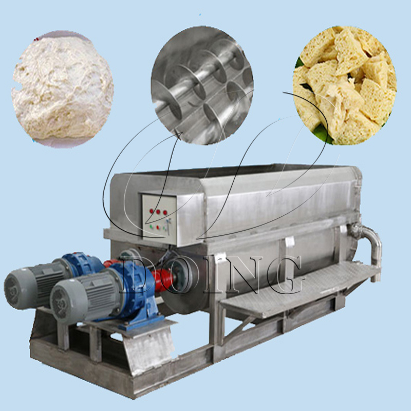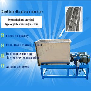 This Automatic wheat gluten washing machine is composed of machine body, double helix axis and driven system. The stock outlet adopted valve disc, can reduce the amount of broken gluten exhaust, another outlet is in the middle and lower part, can be discharge automatically after opening the door, saving manpower.