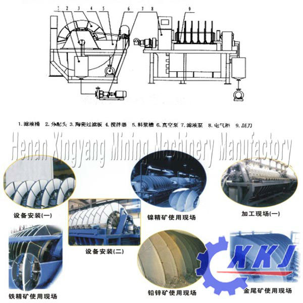 This machine is mainly used for floating 0-0.5mm beneficiated ore, and dewatering clean coal, waste coal and other fine materials, it also can be used for solid-liquid separation in metallurgy, chemical industry, petroleum and sewage treatment. The acid-proof filter is used for solid-liquid separation of corrosiveness materials, with using stainless steel materials.