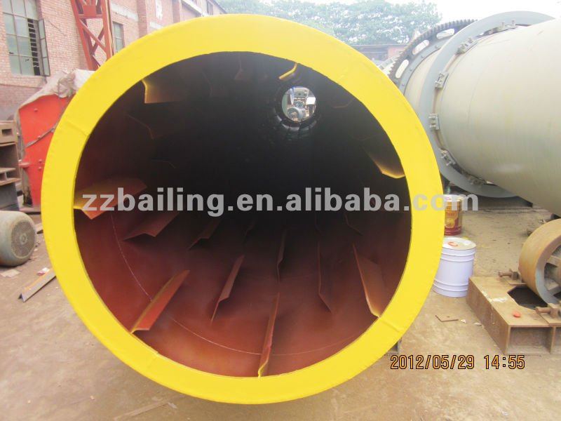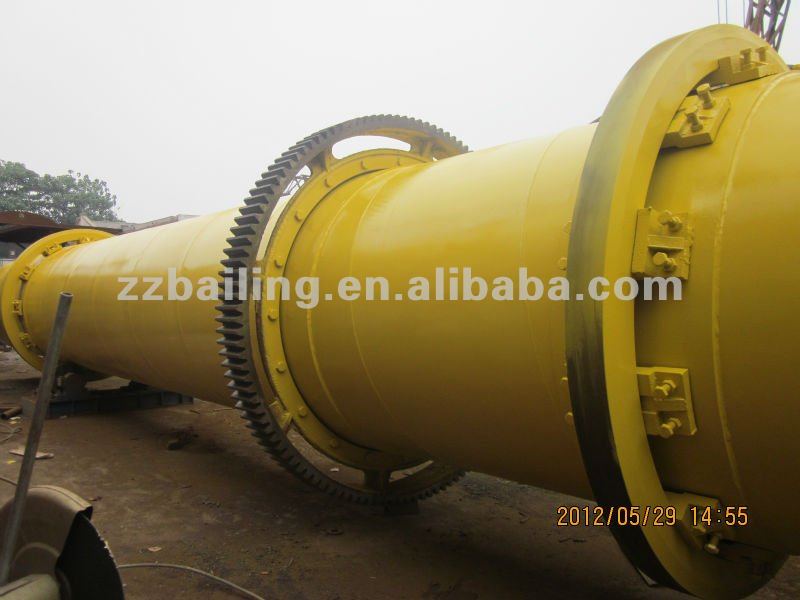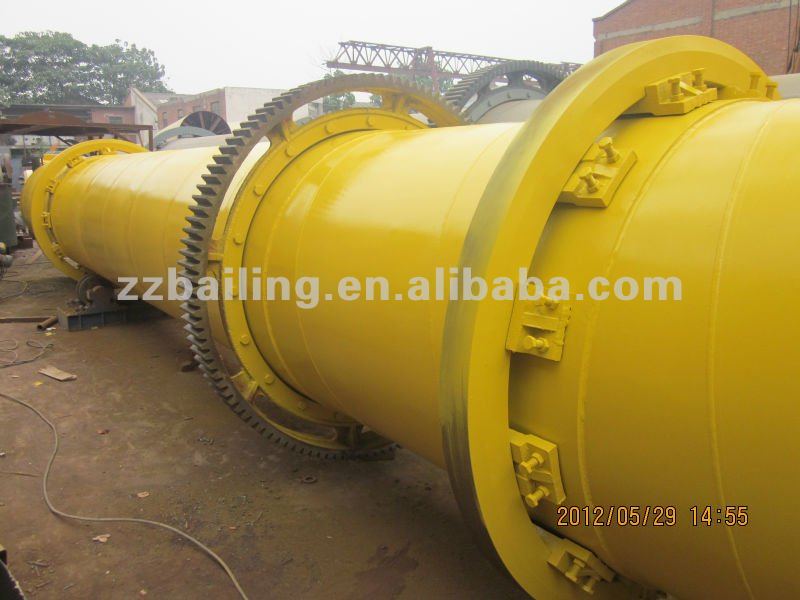Its principle of operation: the raw material plate which is arranged reasonably with changeable angles in order, throws moisture materials into the rotary cylinder. Then water will be separated from the materials by hot air-flow and changed into vapour to be discharged into the atmosphere. Then the materials would be dryed. Rotary dryer is used to dry slag, clay, limestone, It is mainly used for cement, chemical, metallurgical, building materials industries. Its advantages are as follows: high dry capacity, smooth rotation, low energy consumption, easy operation, high output and so on.