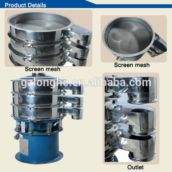 6.Wide application as the ideal equipment for classifying,impurity removing,materials mixing,vibrating and filtering for industries such as foods,drink,medicine,chemicals,plastic,grinding materials,ceramics,paper making and nanometer materials.
