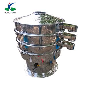 By means of unbalance hammer mounted along the motor shaft, convert the rotation of the motor into a 3-D movement, i.e. horizontal, vertical and inclined movement, and then the 3-D movement is transferred to the vibrating screen surface, which leads to an involutes movement of the materials on the screen surface. That’s why it is also called the Rotary Vibrating Screen. Fine rotary vibrating screen for sugar powder and particle can handle the material into the Precision Screening or Probability screening by adjust the upper and lower ends of the phase angle of the hammer so as to change the movement trajectories of materials on the vibrating screen surface. It has the feature of long trajectory of materials and high utilization rate of vibrating screen surface.