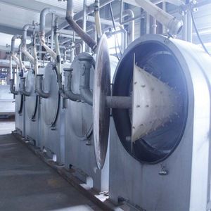The product, fed by a dispenser or pneumatic conveyor, is entered into the barrel through a screw conveyor that regulates the flow to the sieving room. A rotating shaft with shutters spreads the product on the walls of the cylindrical sieved meshes by applying centrifugal force.