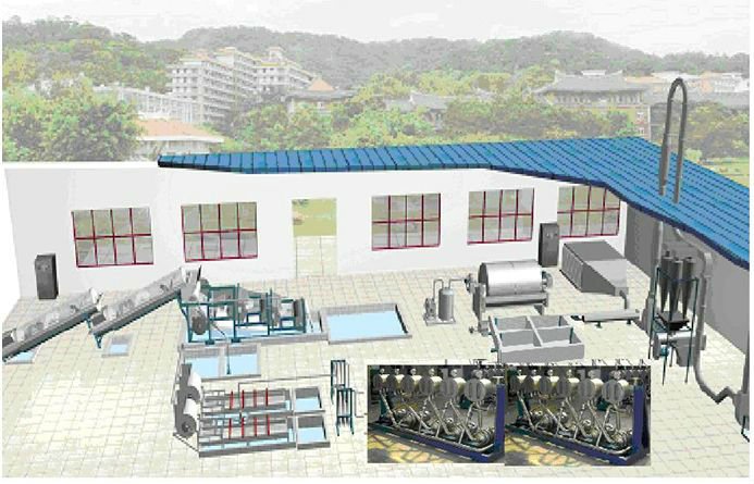 To cassava, the material is sent to cage washer through scrape board to get the result of decontamination, cleaning and peeling . Then through a paddle-washing slot, material is sent to crash section.